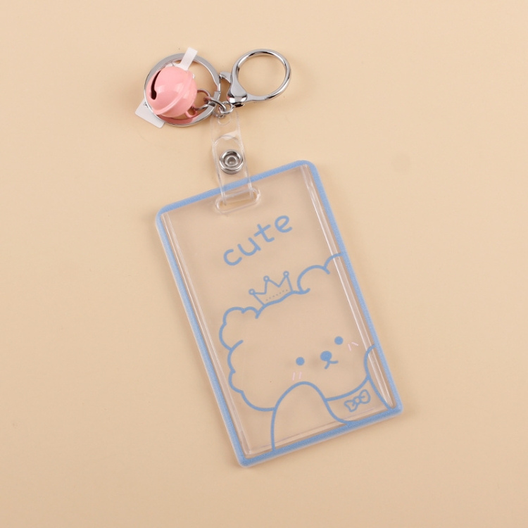 2 PCS Transparent Acrylic Push Pull Card Sleeve Bell Keychain Ring ID Card Sleeve