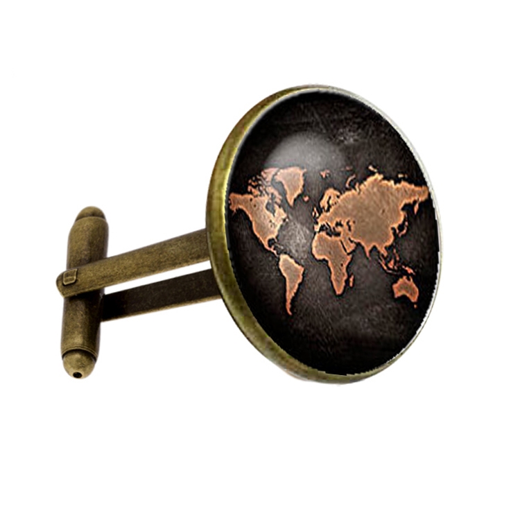 2 PCS World Map Pattern Cufflinks Antique Retro Bronze Cufflinks