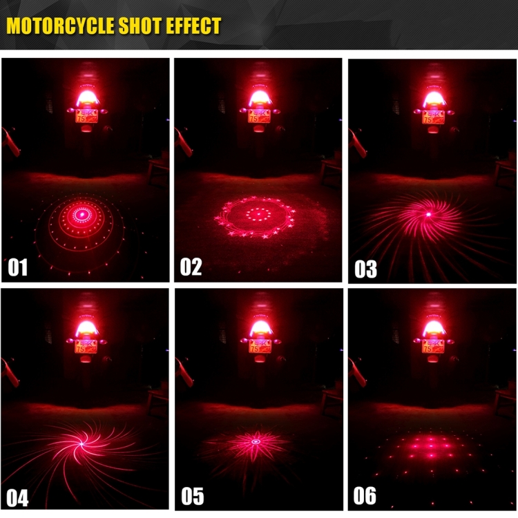 200mW Universal Car And Motorcycle Rear-end Alarm 650nM Laser Fog Anti-Collision Warning Lamp with Six Pattern, DC 8-36V Cable Length: 60cm