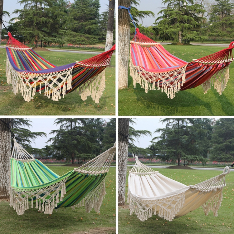 200x150cm Double Outdoor Camping Tassel Canvas Hammock with Stick