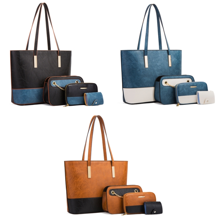 20820 4 in 1 Color-Block Messenger Handbag Large-Capacity Lady Bag