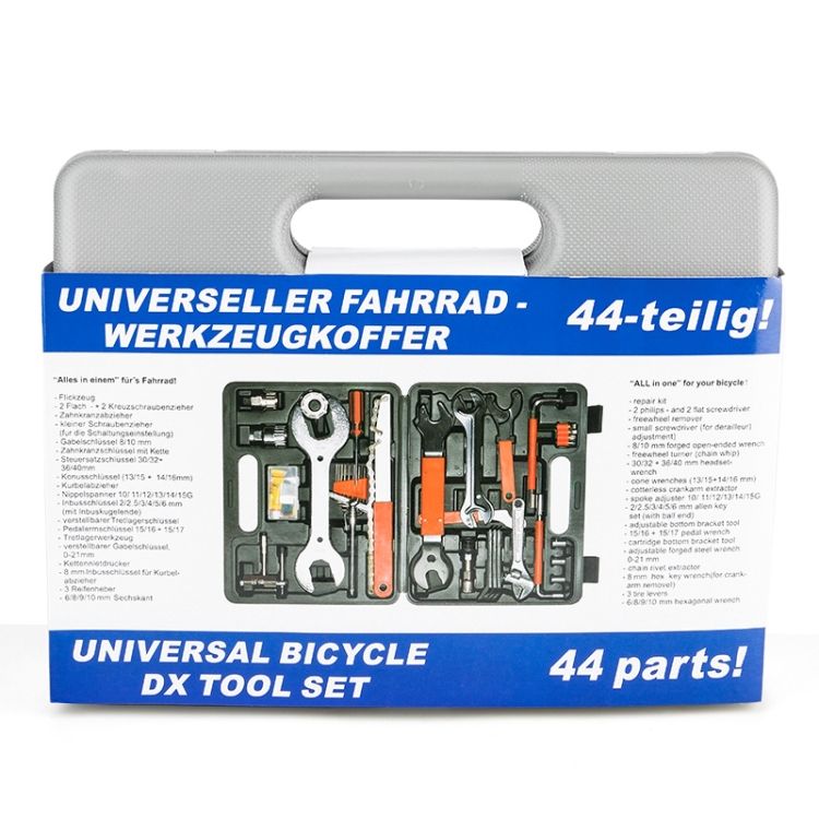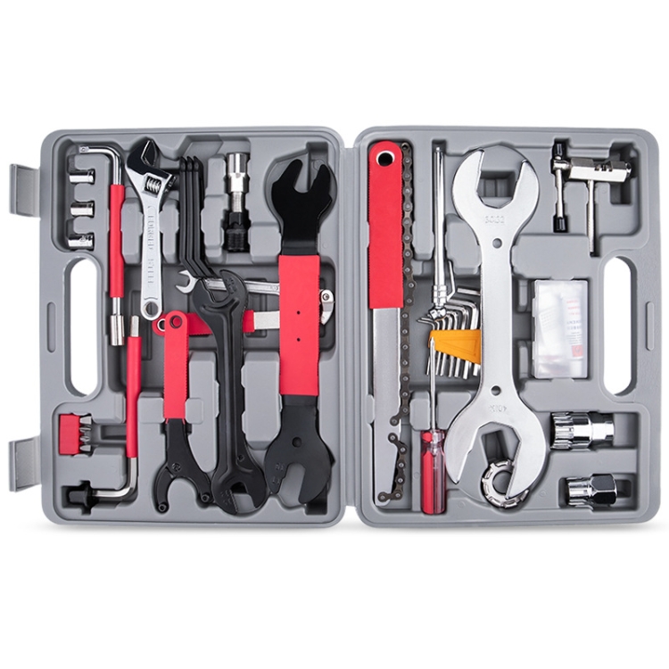 Packing list: cassette freewheel removal socket, cassette bottom bracket removal tool (20 teeth), spoke wrench, multi-specification Allen wrench, crankset crank removal tool, chain cutter, tire lever, tire repair box, open end wrench , open-end wrench, flywheel removal tool, Phillips screwdriver, flat and cross screwdriver joints, tire pressure test pen, enlarged open-end wrench, eight-character center shaft wrench, flywheel socket wrench, crescent wrench, socket wrench, hub open-end wrench, pedal wrench