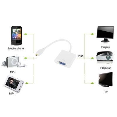 1) This Micro HDMI Male to VGA Female adapter cable lets you connect standard analog monitor, projector, or LCD screen