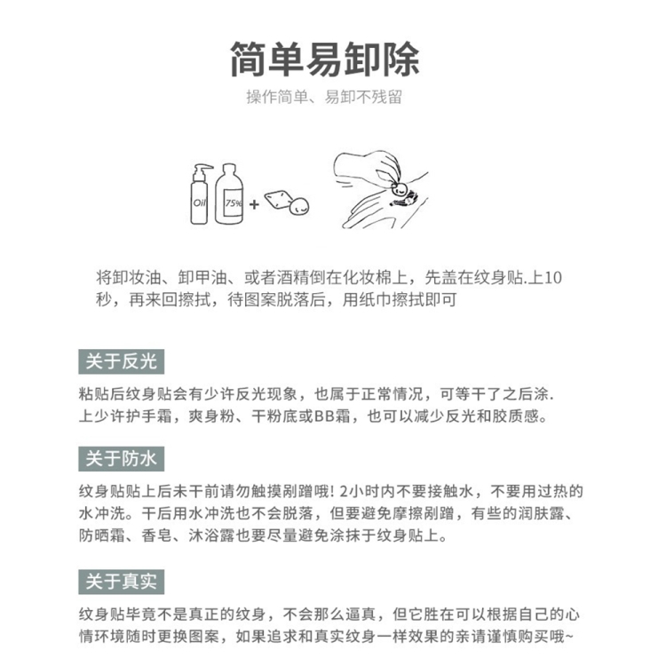 4. The natural tattoo sticker like a real tattoo can be kept for a long time and is not easy to fall off.
