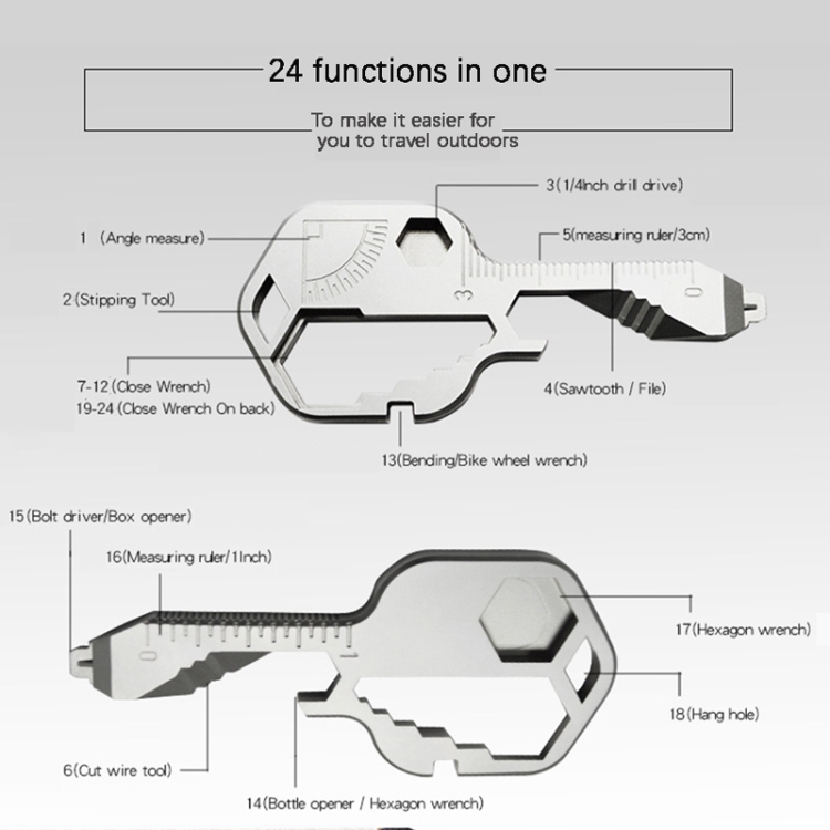 24 In 1 Key Shape Outdoor Emergency Tool Stainless Steel Pendant Portable Multi-Function Outdoor Camping Tool