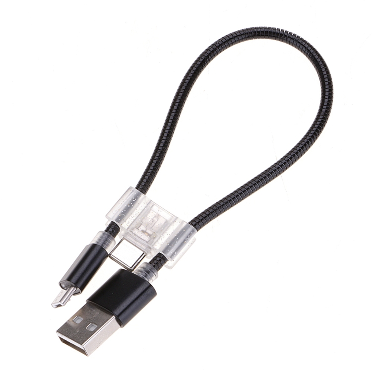 24cm 2A Micro USB + USB-C / Type-C to USB Flexible Data Charging Cable