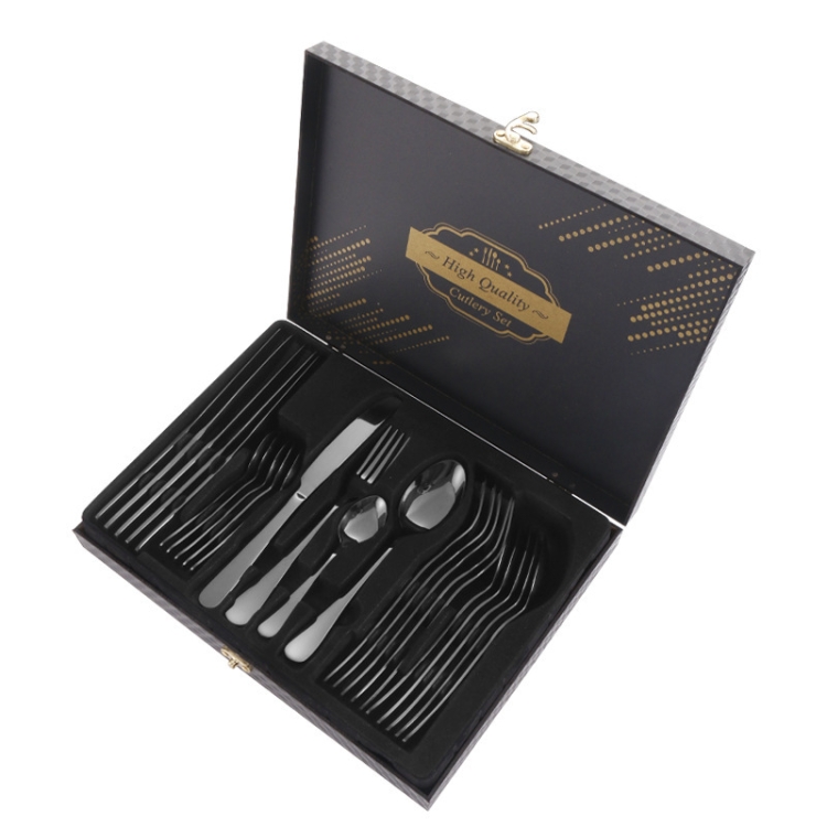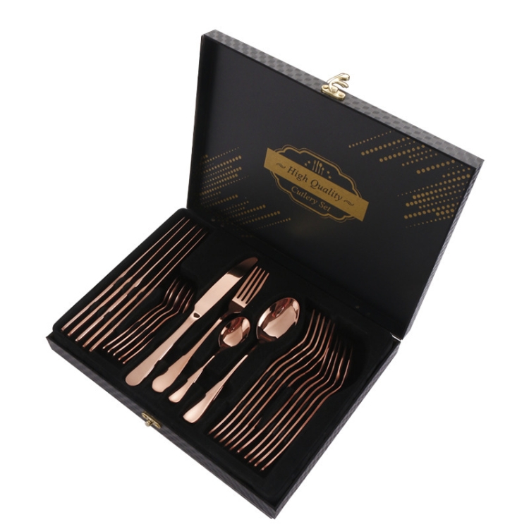 24pcs/Set Wooden Boxed Stainless Steel Cutlery Knife Fork Spoon Steak Dinnerware Set