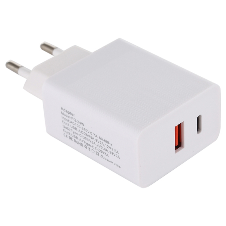24W PD + QC3.0 Fast Charger Power Adapter Plug Adapter EU Plug