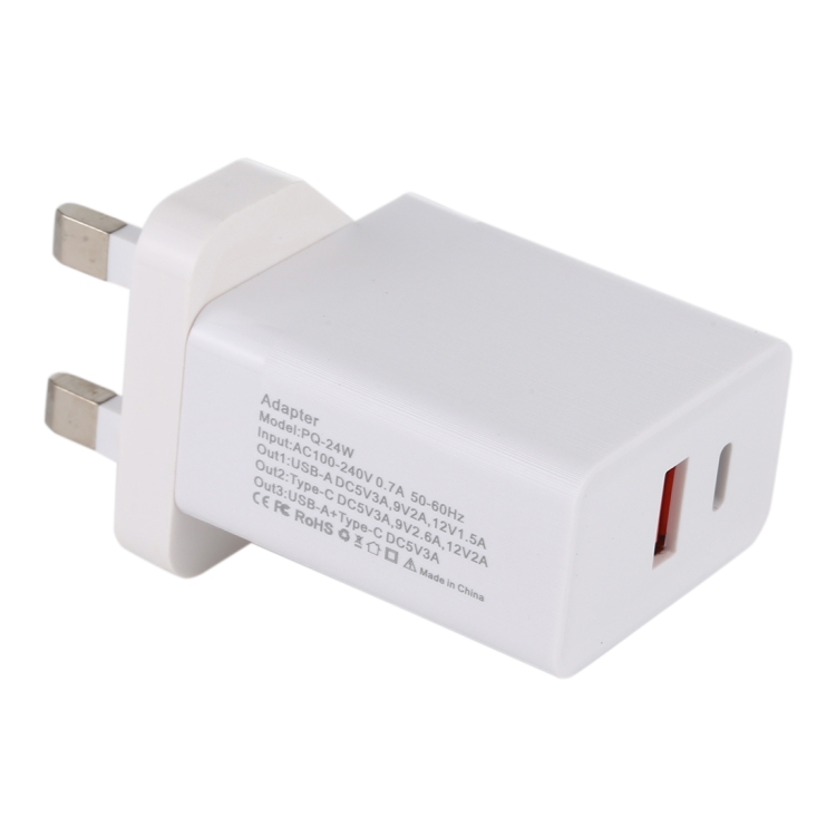 24W PD + QC3.0 Fast Charger Power Adapter Plug Adapter UK Plug