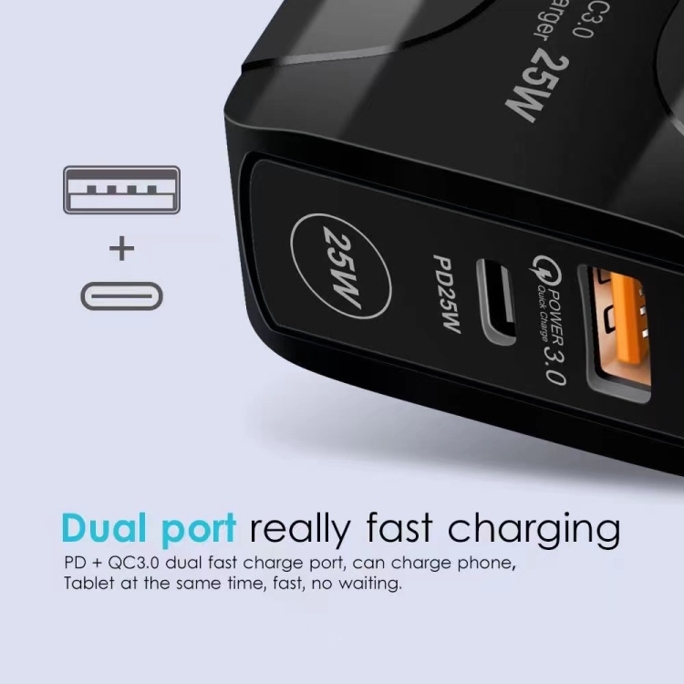25W PD Type-C + QC3.0 USB Ports Travel Charger