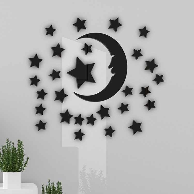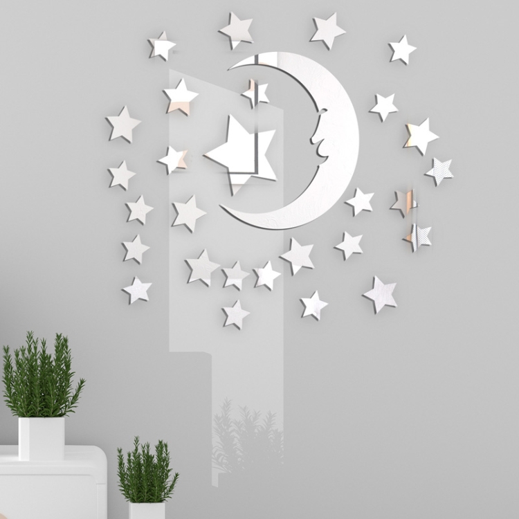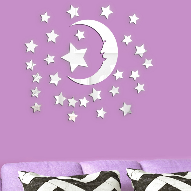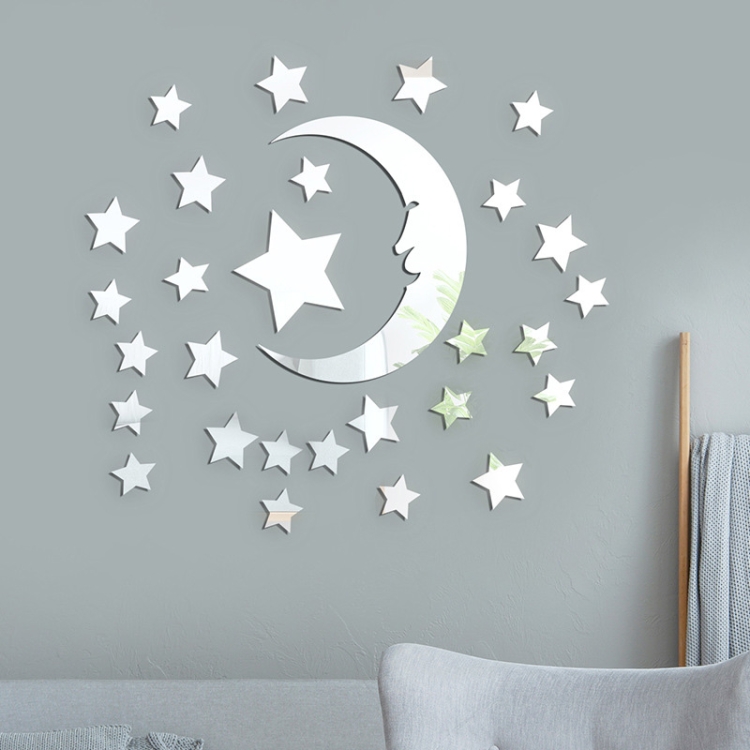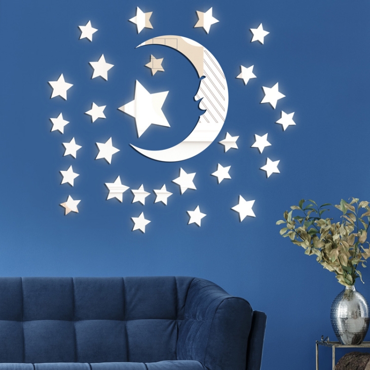 29pcs /Set Acrylic Stars And Moon Stereoscopic Mirror Wall Stickers Self-Adhesive Bedroom Background Wall Decoration