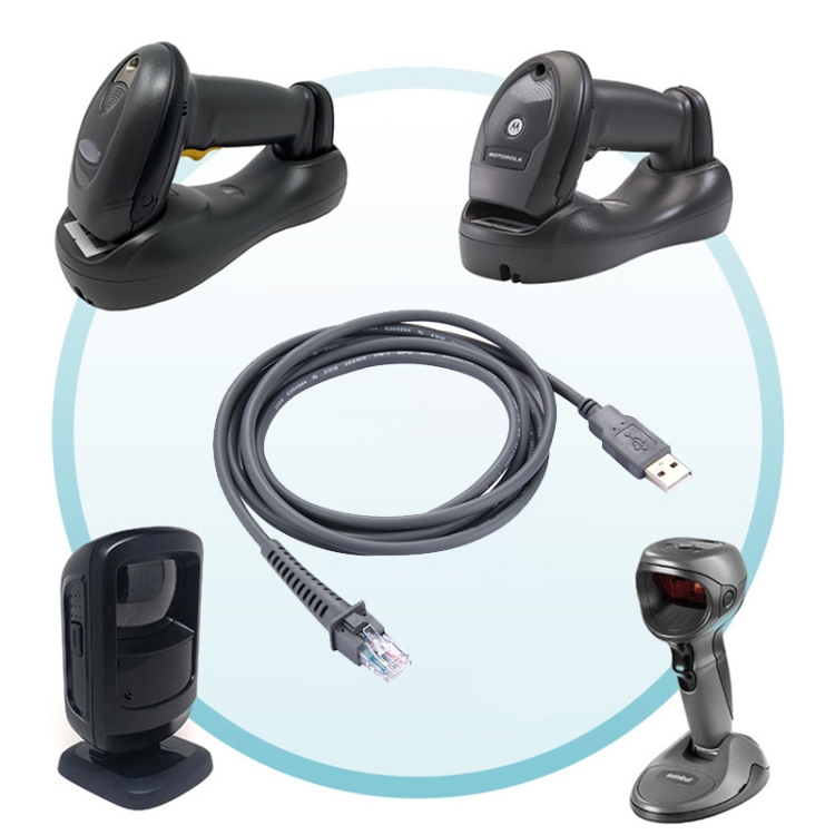 2m USB A Male to RJ45 Scanner Serial Data Cable for Symbol LS2208 / 2208AP / LS4278