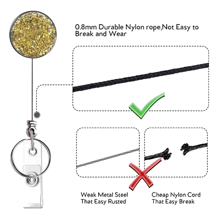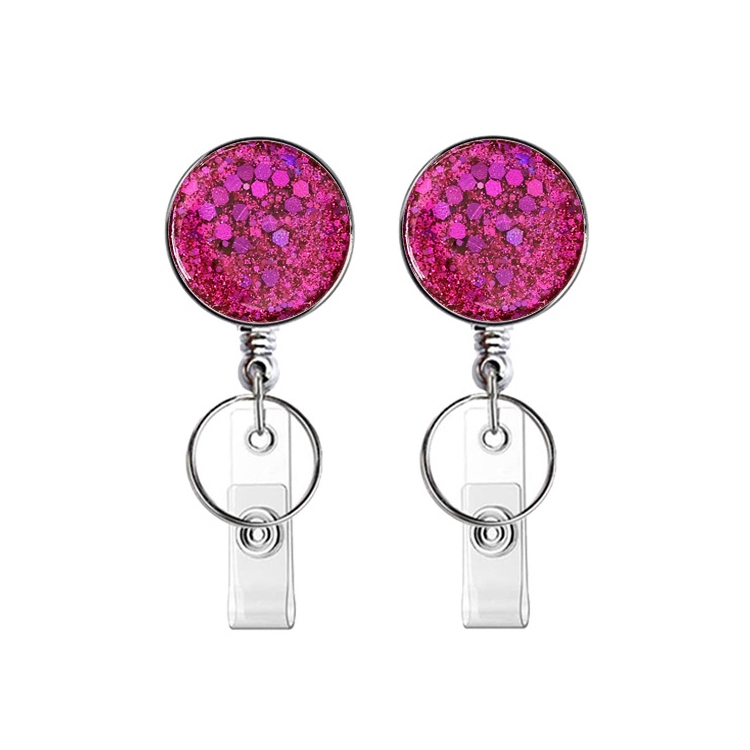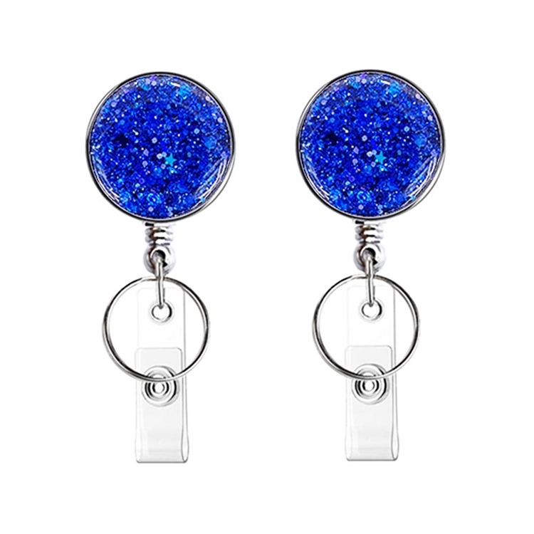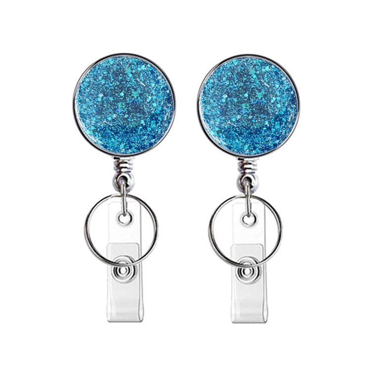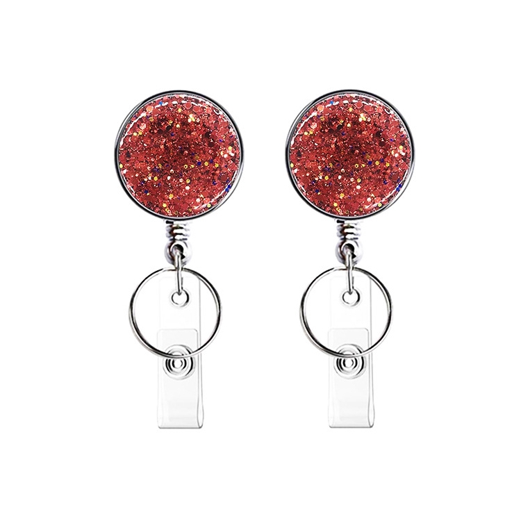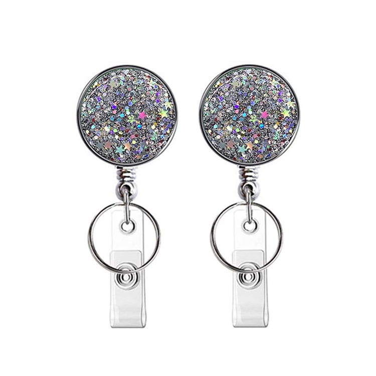 2pcs Diamond Glitter Sequins Retractable Pull Badge Reel Name Tag Card Badge Holder