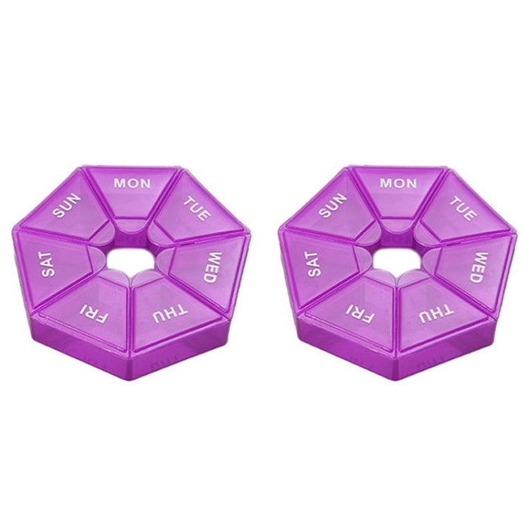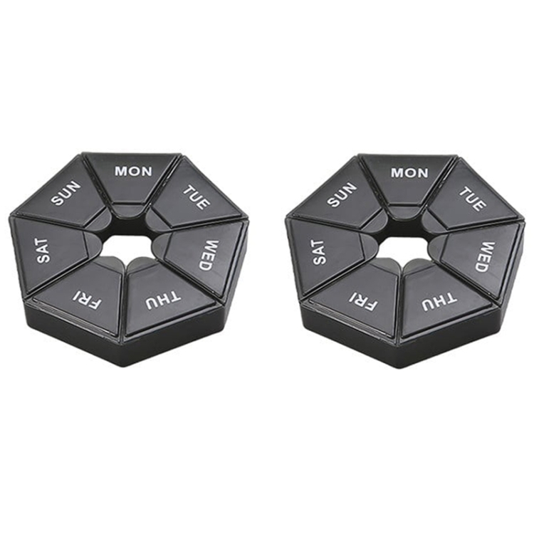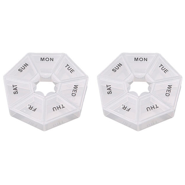 2pcs Portable Transparent Moisture-Proof Weekly 7-grids Pill Storage Box