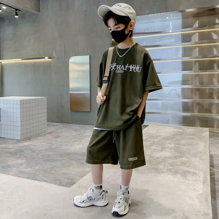 2pcs/set Middle and Big Kids Summer Boys Short T-shirt and Pants