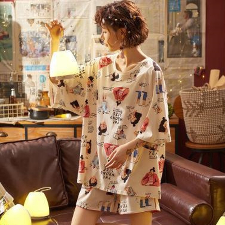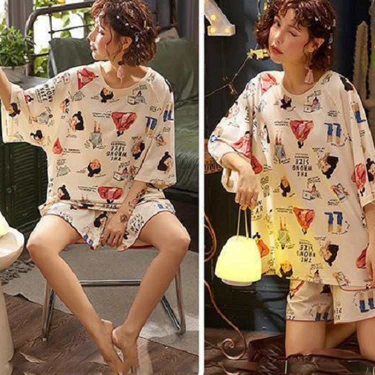 Be the first to review “2pcs/Set Women Spring And Summer Thin Pajamas Short Sleeve Shorts Homewear”