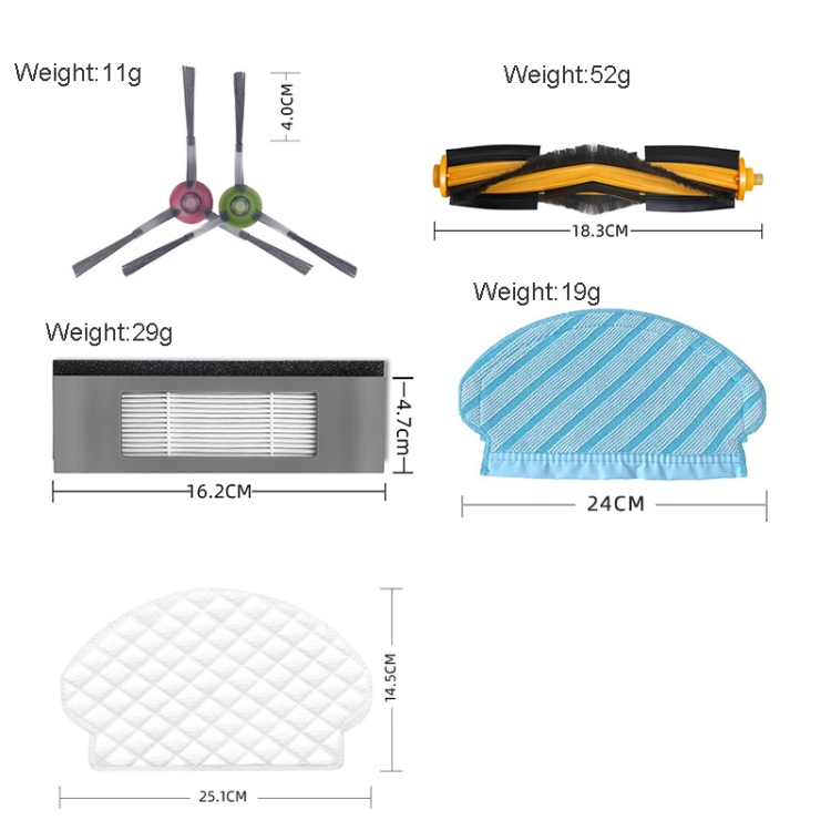| Option | 13 In 1 Set, 1pc Main Brush, 2pairs Side Brush, 2pcs Hepa Filter, 2pcs Washing Rag, 20pcs Disposable Wipes, 1pc Main Brush Cover, 2pcs White Filter |