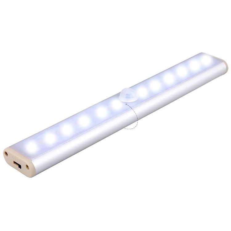 2W 12 LEDs White Light Wide Screen Intelligent Human Body Sensor Light LED Corridor Cabinet Light, USB Charging Version
