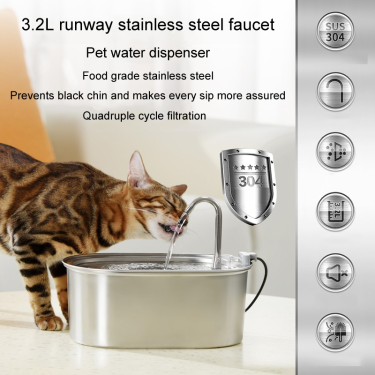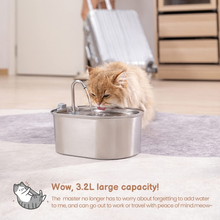 3.2L Stainless Steel Faucet Pet Water Fountain Quiet Cats Water Dispenser