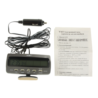 3.6 inch LCD Car Digital Thermometer with Time / Date / Week / Alarm / Car Storage Battery Voltage Display