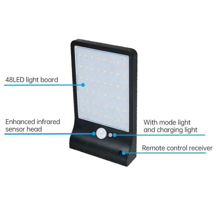 3.8W 48 Two-color LEDs Outdoor Waterproof Solar Wall Light Sensor Garden Light Street Light without Pole, Luminous Flux: 450lm