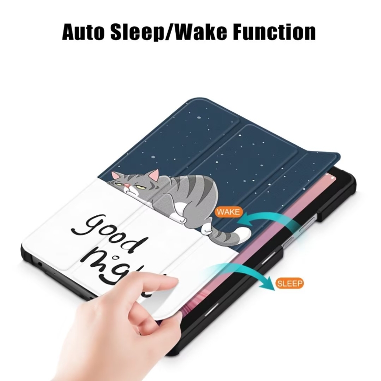 3-folding Magnetic Buckle Coloured Drawing Leather Smart Tablet Case