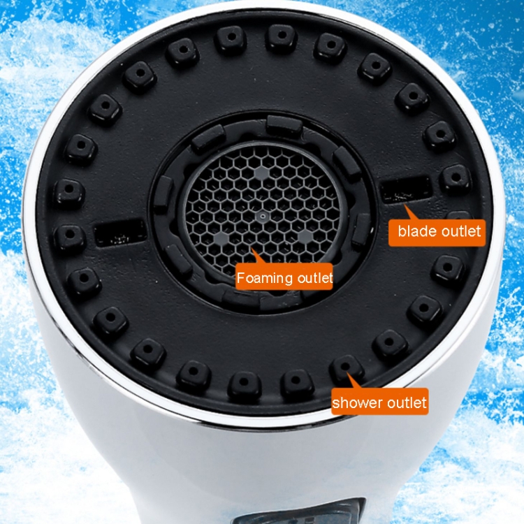 1. Multi-functional faucet, with 3 kinds of water outlet functions, built-in foaming and splash-proof device