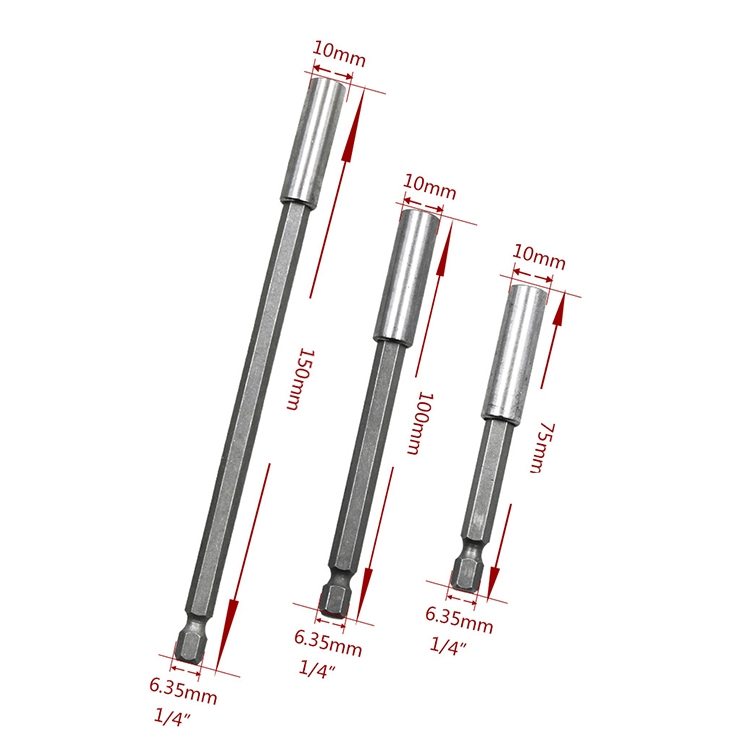 3 in 1 1/4 Electric Batch Head High Magnetism Connecting Rod Pistol Drill Extension Rod Sleeve Fast Turning Joint, Length: 75/100/150mm