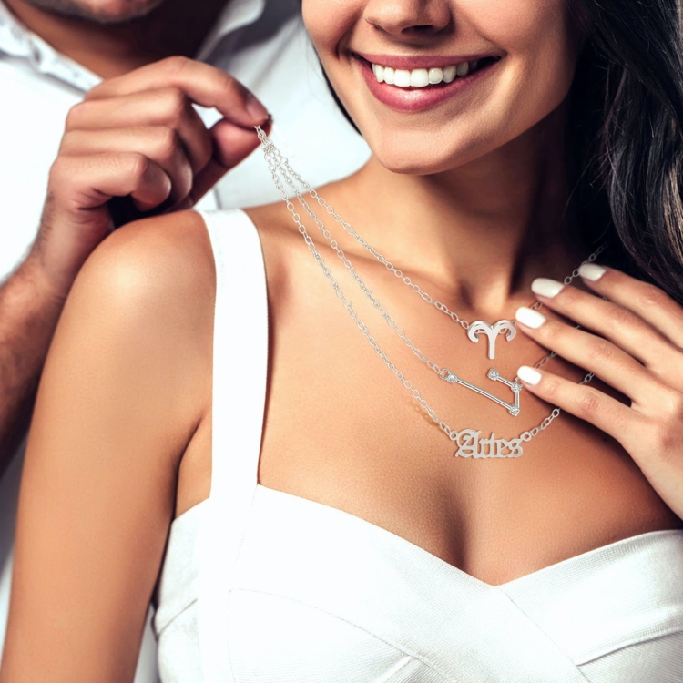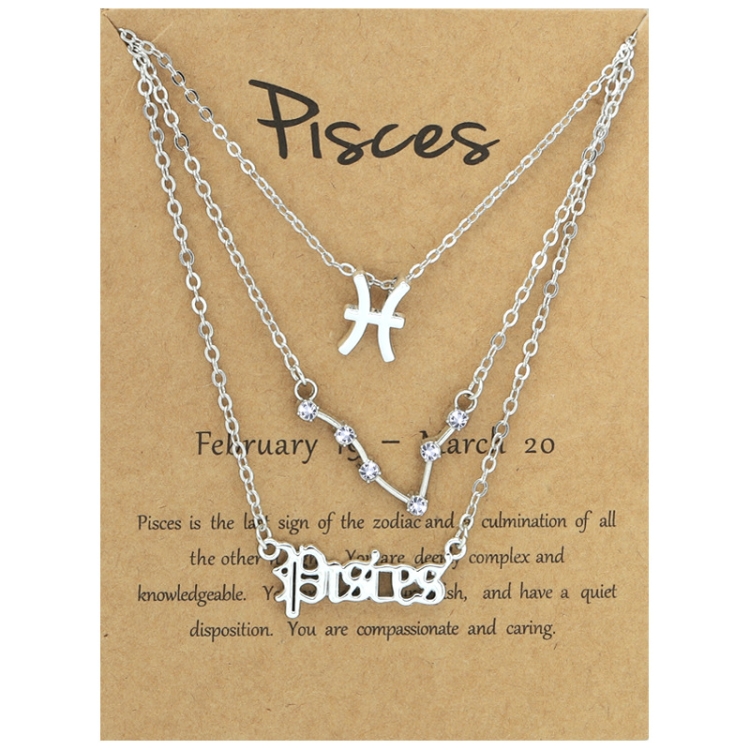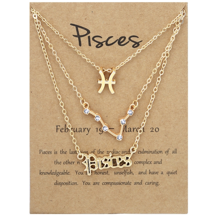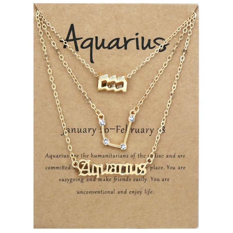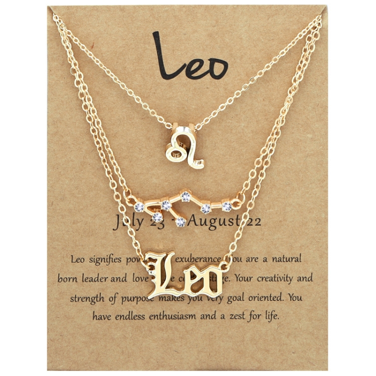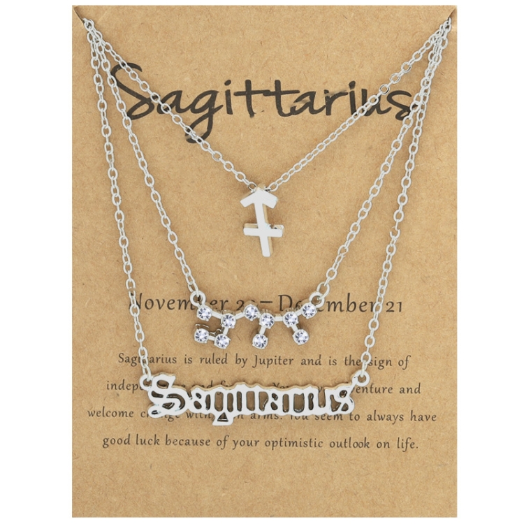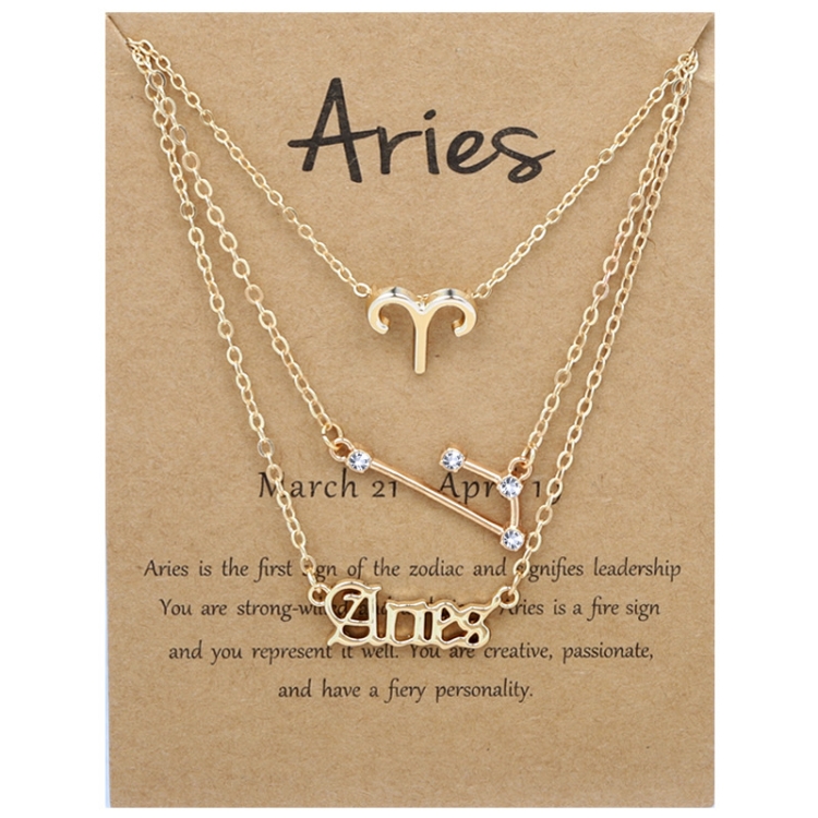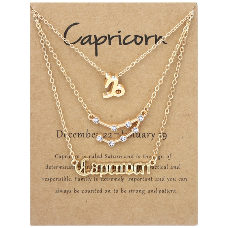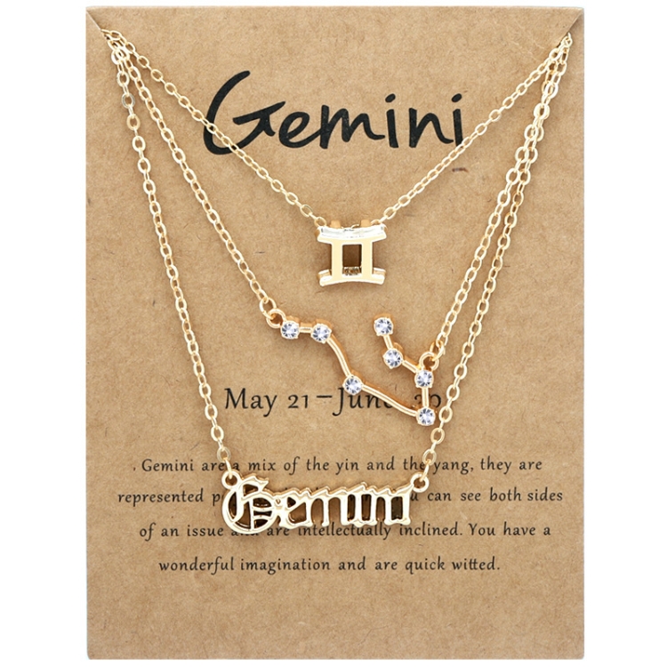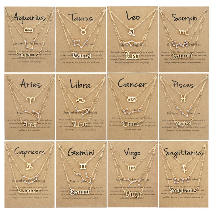 3 In 1 12 Zodiac Signs Necklace Set Retro Alphabet Symbols With Diamonds Jewelry Set