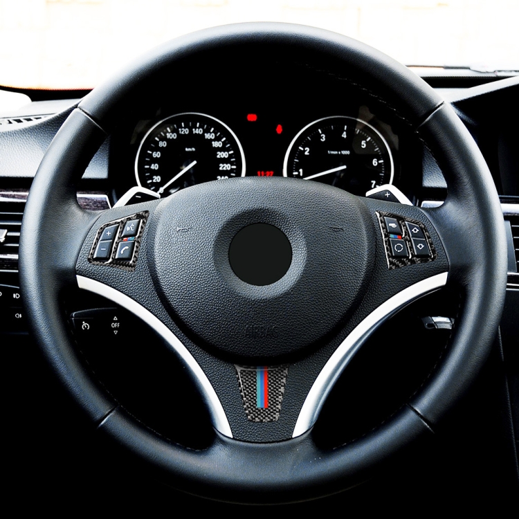 3 in 1 Car Carbon Fiber Tricolor Color Steering Wheel Button Decorative Sticker for BMW 3 Series E90 2005-2012, Left and Right Drive Universal
