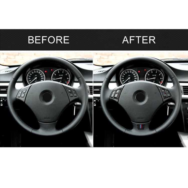 3 in 1 Car Carbon Fiber Tricolor Steering Wheel Button Decorative Sticker for BMW 3 Series E90 2005-2012, Left and Right Drive Universal