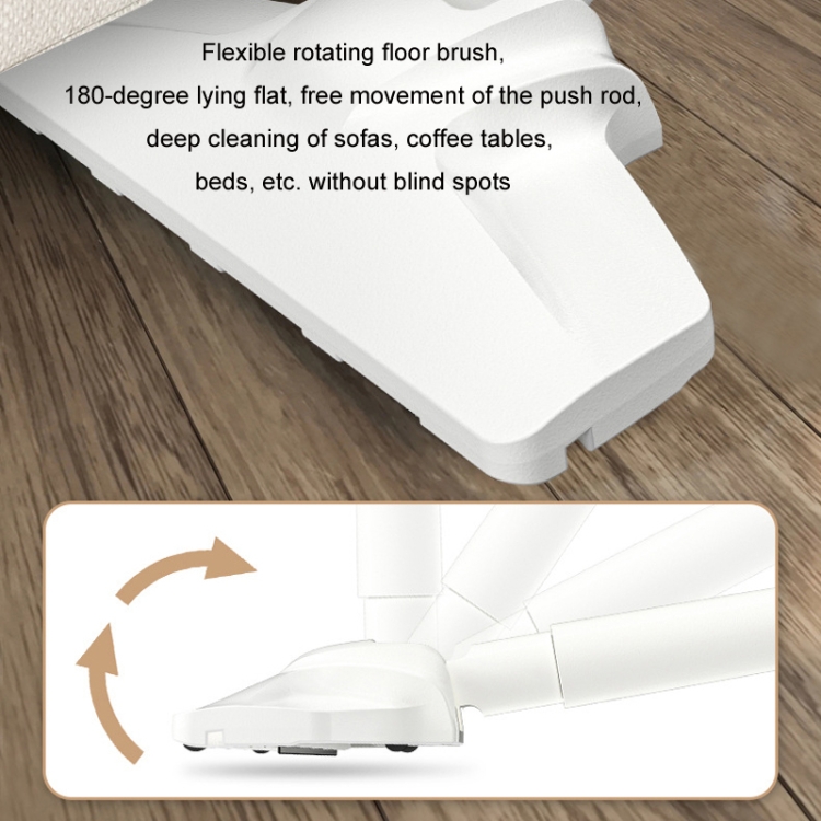 11. Flexibly rotate the floor brush, lie flat at 180 degrees, freely move the push rod, and penetrate deep into the bottom of sofas, coffee tables, beds, etc. for hygienic cleaning without blind spots.