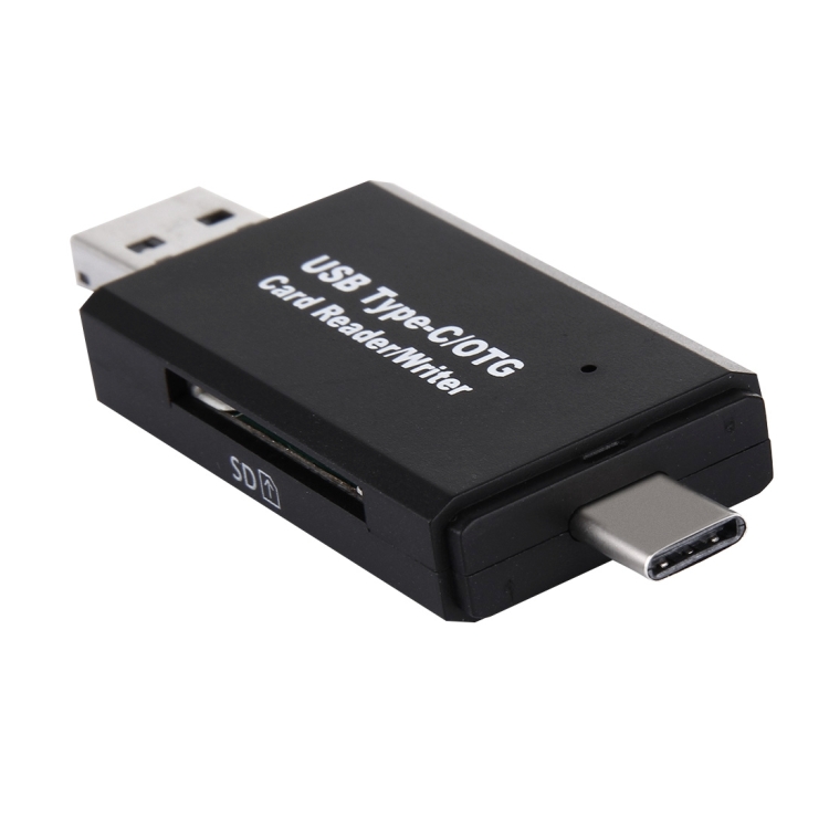3 in 1 USB-C / Type-C 3.1 to USB 2.0 + Micro USB + SD(HC) + Micro SD Card Reader Adapter with OTG Function(Black)