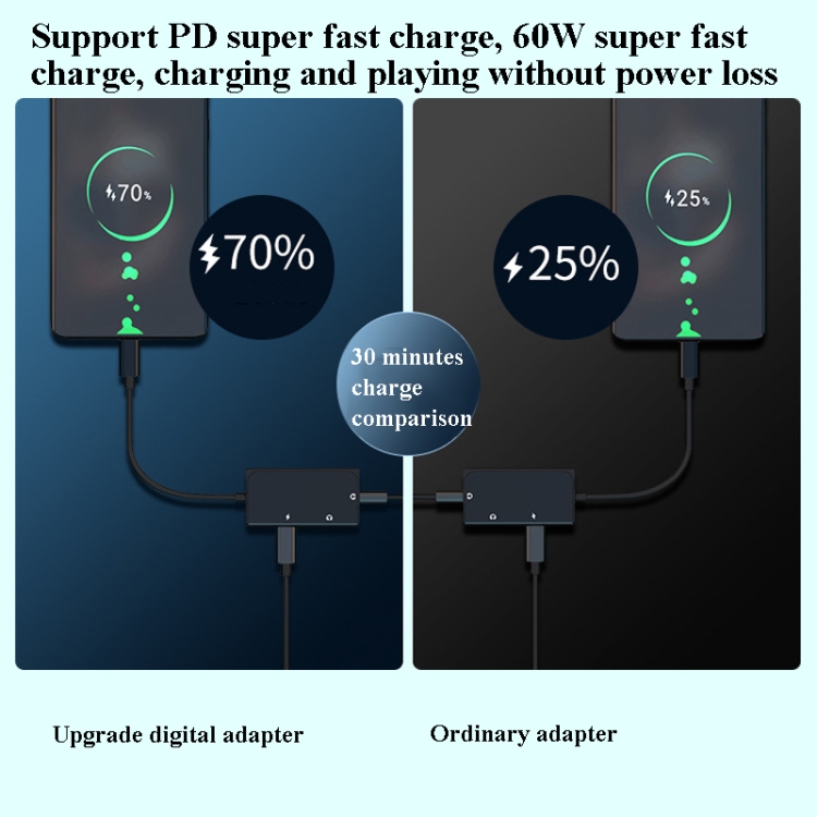 3 in 1 USB-C / Type-C Male to 3.5mm + PD 60W Female Charging & Digital Audio Adapter