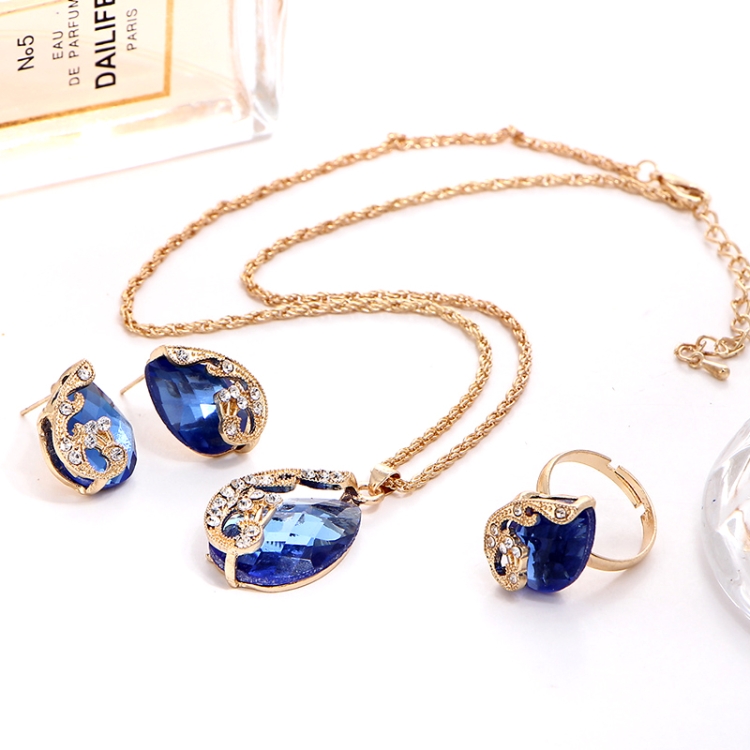 3 in 1 Women Beautiful Peacock Crystal-like Necklace Ring Earrings Jewelry Set