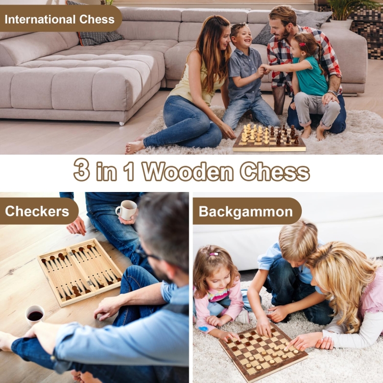 3 In 1 Wooden Chess Set Foldable Chess Board For Kids Adults