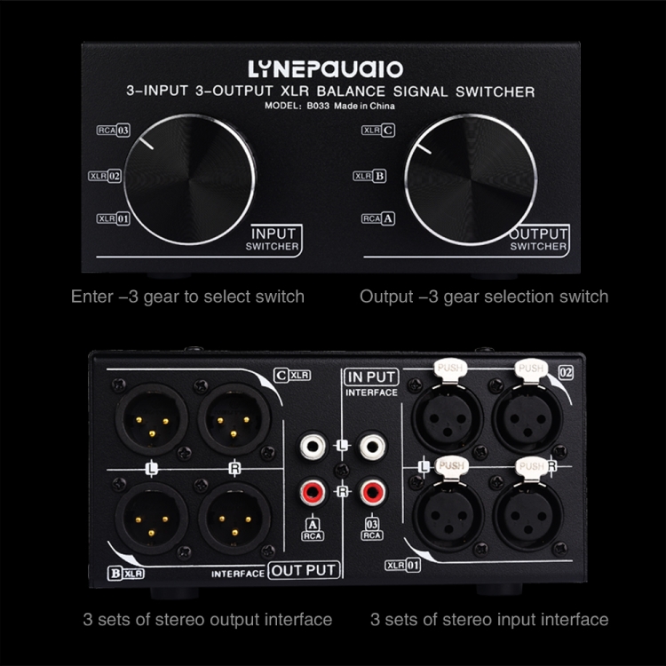 – B033 3-input 3-output fully balanced audio signal selector switcher x 1