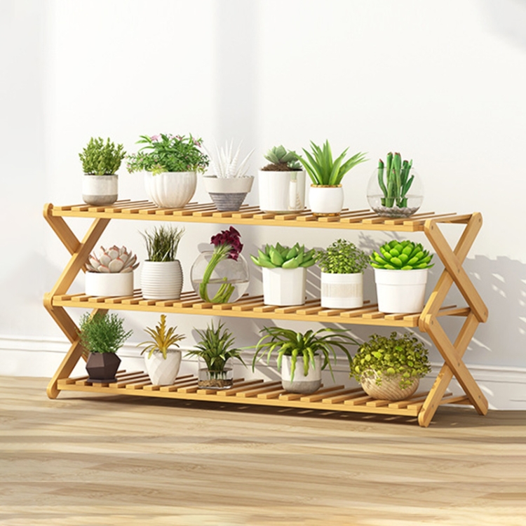3-Layer Balcony Living Room Collapsible Solid Wood Flower Stand Potted Planting Shelves, Length: 100cm