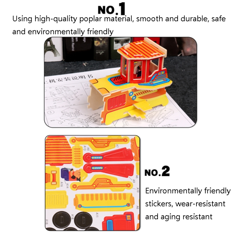 3 PCS 512 Children Wooden Assembled Car Engineering Vehicle Excavator Assembling Toy