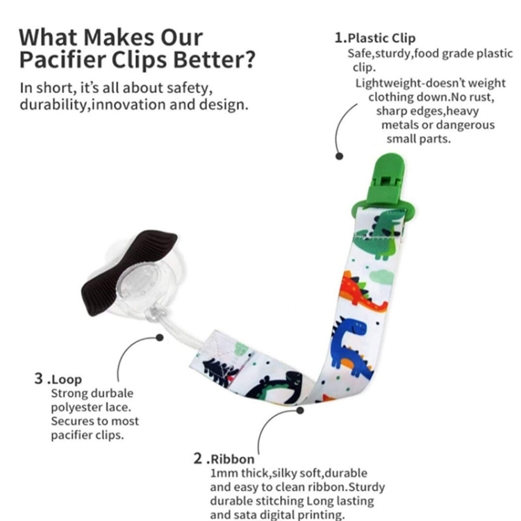 4. Features: The clip effectively prevents the pacifier clip from falling off. The safety rope is made of nylon rope, which is safe and environmentally friendly.