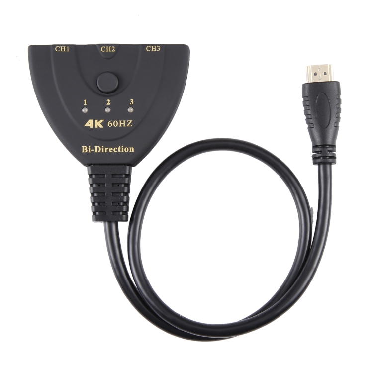 3 x 1 4K 60Hz HDMI Bi-Direction Switcher with Pigtail HDMI Cable