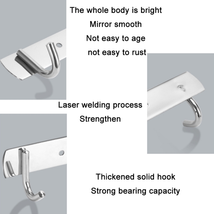 7. Size: 3 hooks 20.5×3 cm, hole spacing 8 cm; 4 hooks 29×3 cm, hole spacing 16 cm; 5 hooks 37×3 cm, hole spacing 24 cm; 6 hooks 45×3 cm, hole spacing 32 cm; 7 hooks 53.5×3 cm , the hole spacing is 40 cm; the 8 hooks are 61×3 cm, the hole spacing is 48 cm; the 201 butterfly hook is 6 cm long and the hole spacing is 3.5 cm