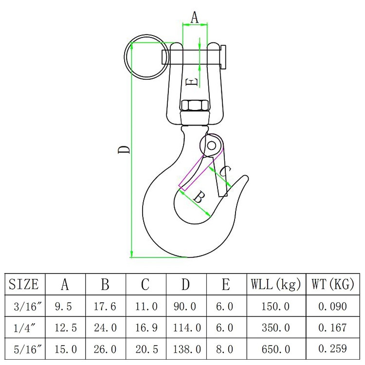 2. The rotating hook can rotate 360 degrees when working with other rigging accessories, and at the same time, you can change the lifting angle at will.