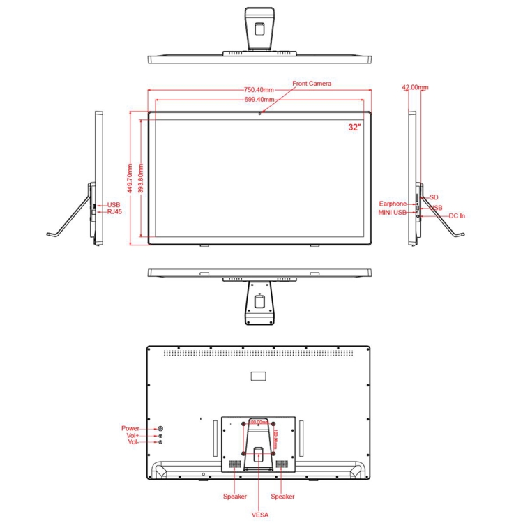 32 inch LCD Display Digital Photo Frame, RK3288 Quad Core Cortex A17 up to 1.8GHz, Android 8.1, 2GB+16GB, Support WiFi & Ethernet & Bluetooth & SD Card & 3.5mm Jack