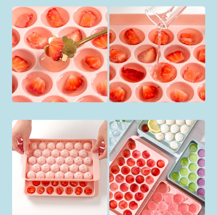 33 Grid Round Ice Hockey Mold With Lid Ice Box Small Marble Ice Tray, Random Color Delivery