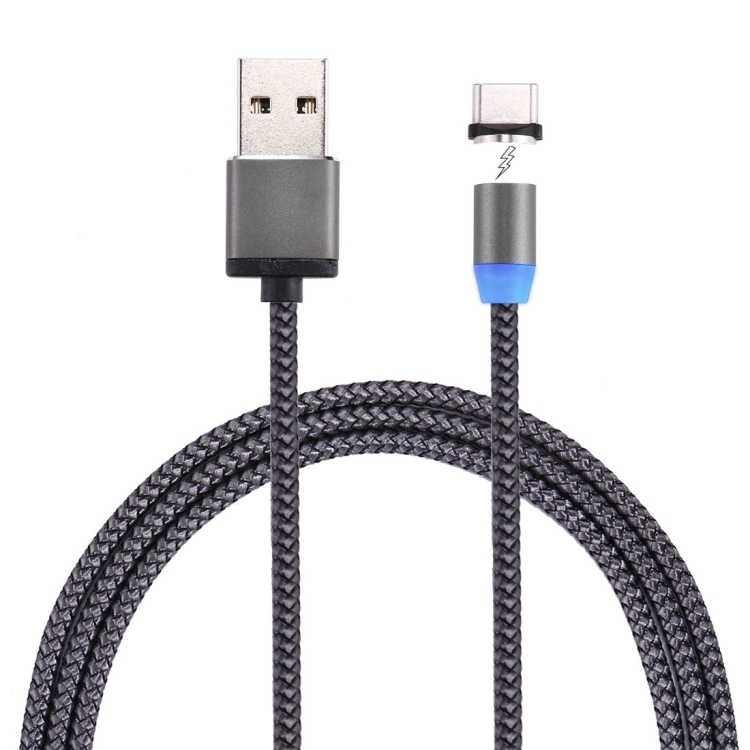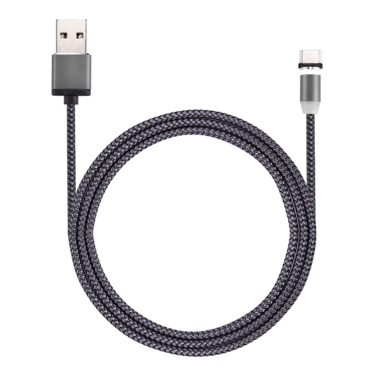 360 Degree Rotation 1m Weave Style USB-C / Type-C to USB 2.0 Strong Magnetic Charger Cable with LED Indicator