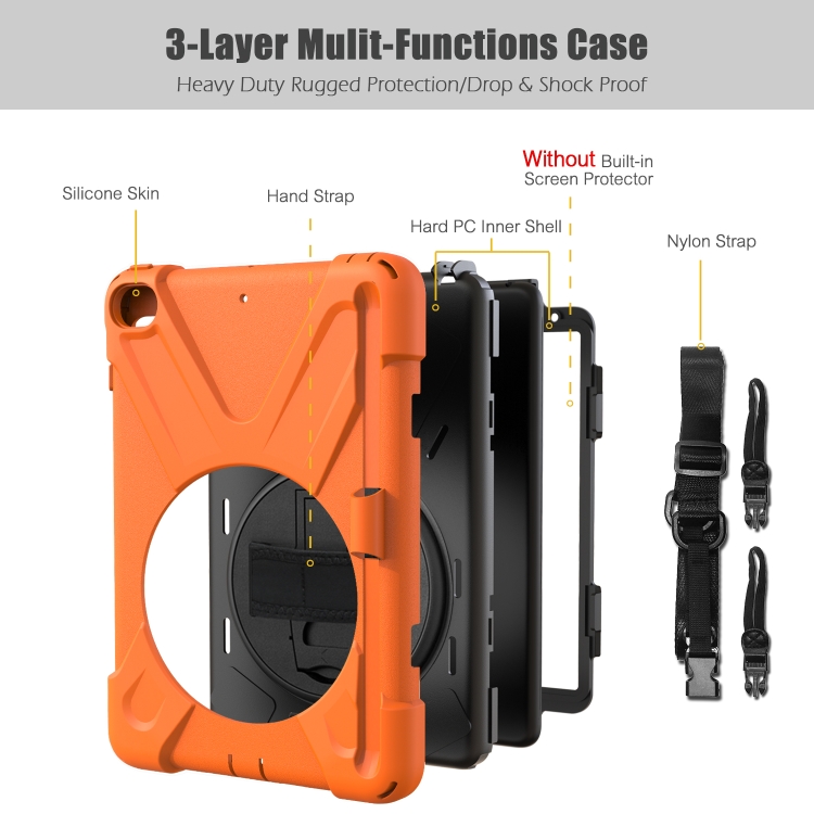 360 Degree Rotation Silicone Protective Cover with Holder & Hand Strap & Long Strap & Pencil Slot