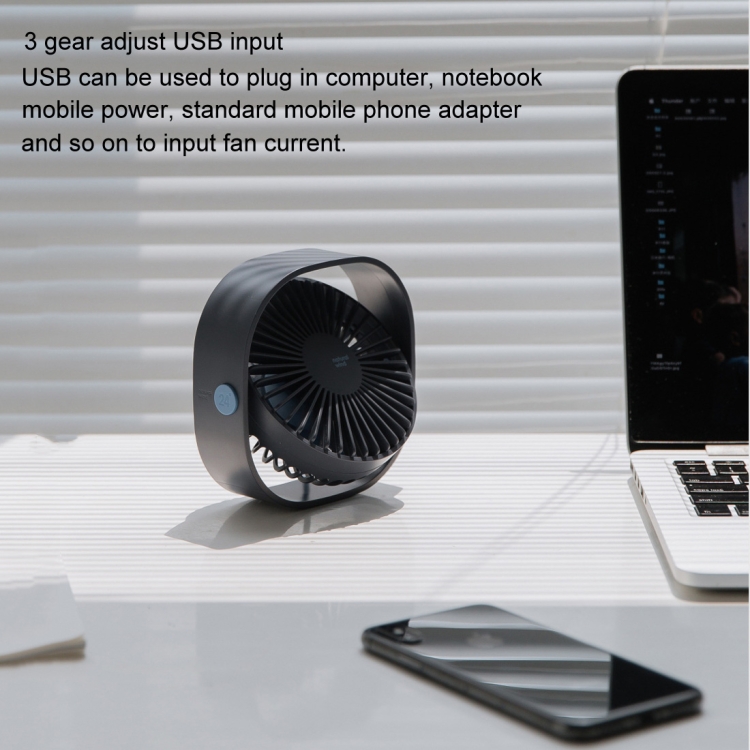 360 Degree Rotation Wind 3 Speeds Mini USB Desktop Fan