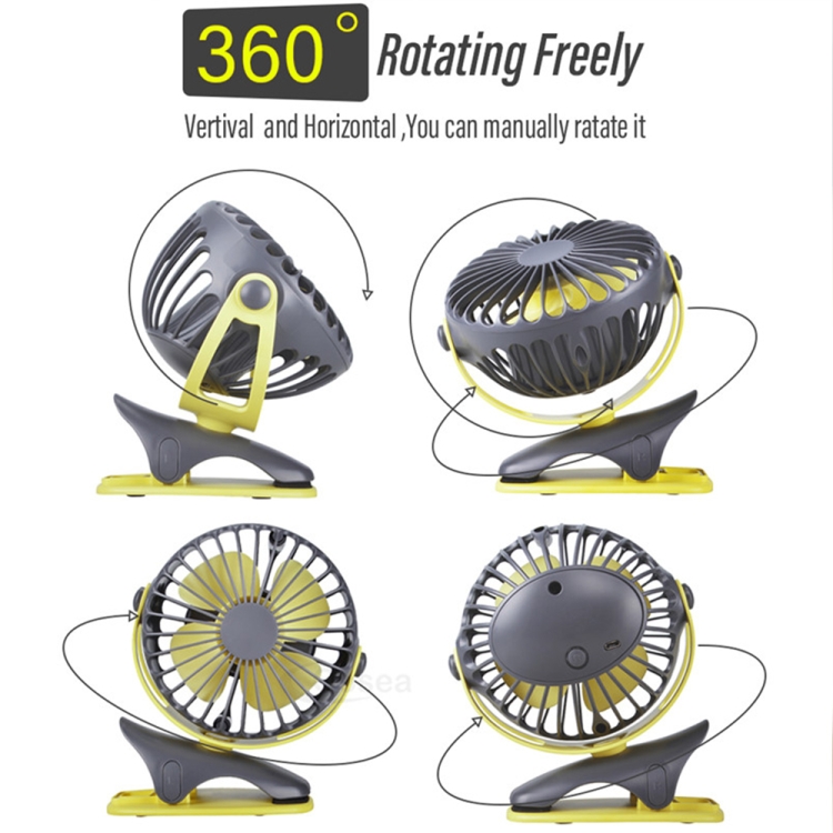 360 Degree -Round Rotation Mini Cooling Air Fan 4 Speed Adjustable Portable USB Rechargeable Desktop Clip Fan