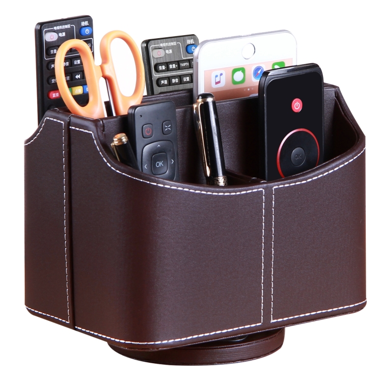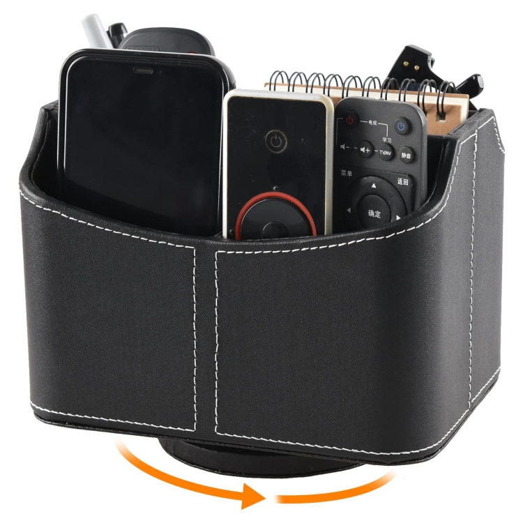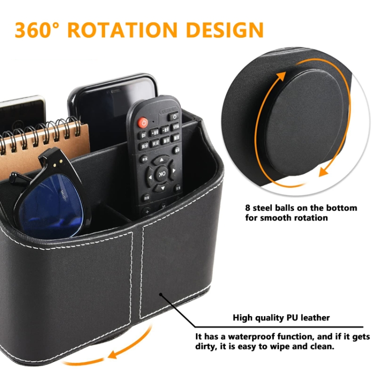 360 Degrees Rotating Desk Organizer Storage Box PU Leather Remote Control Holder